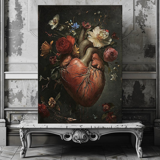 Blooming Heart Gothic Canvas Print - Dark Romance, Macabre Wall Decor