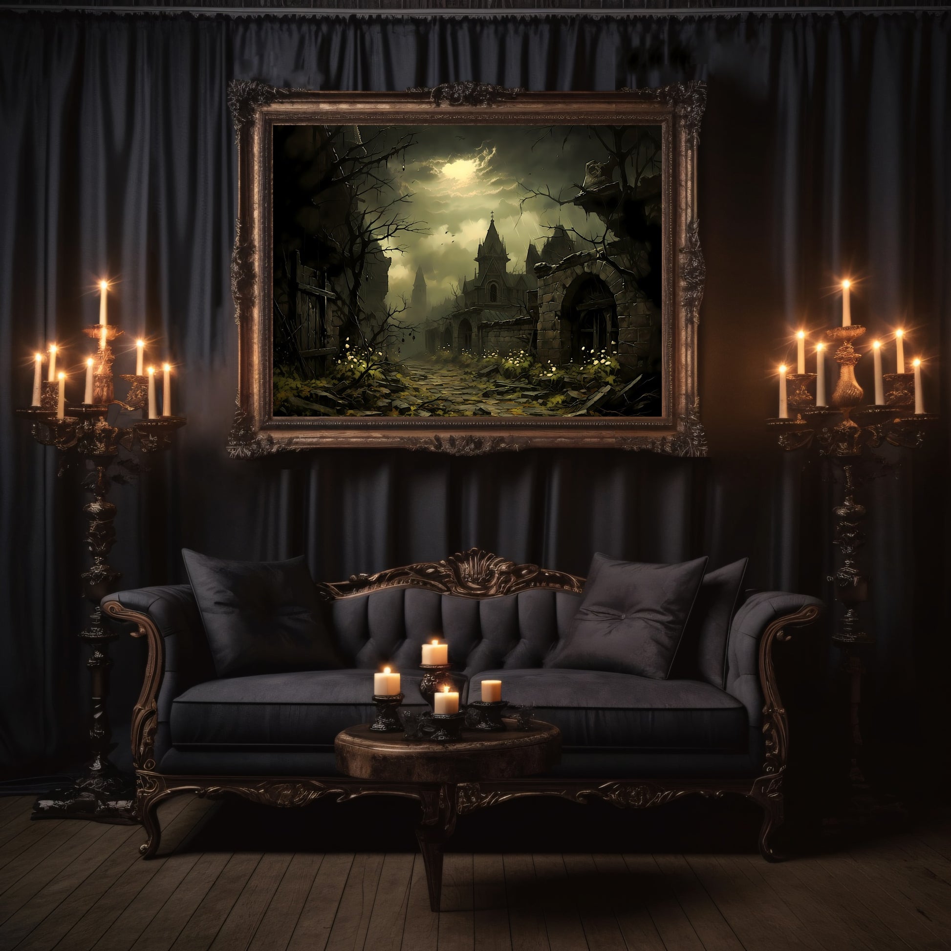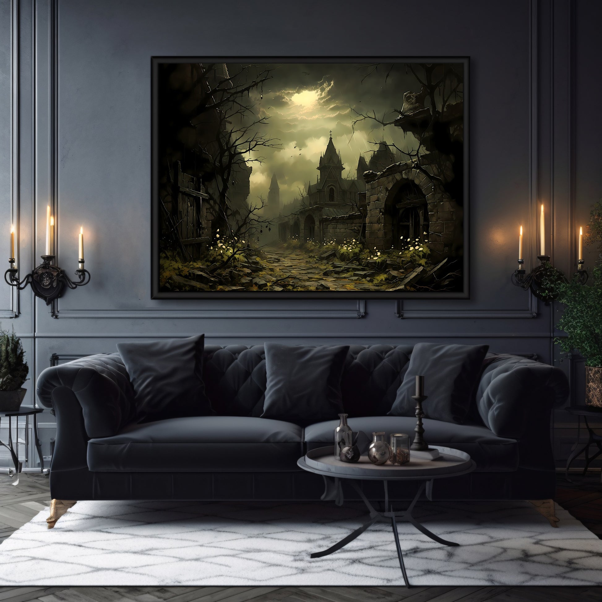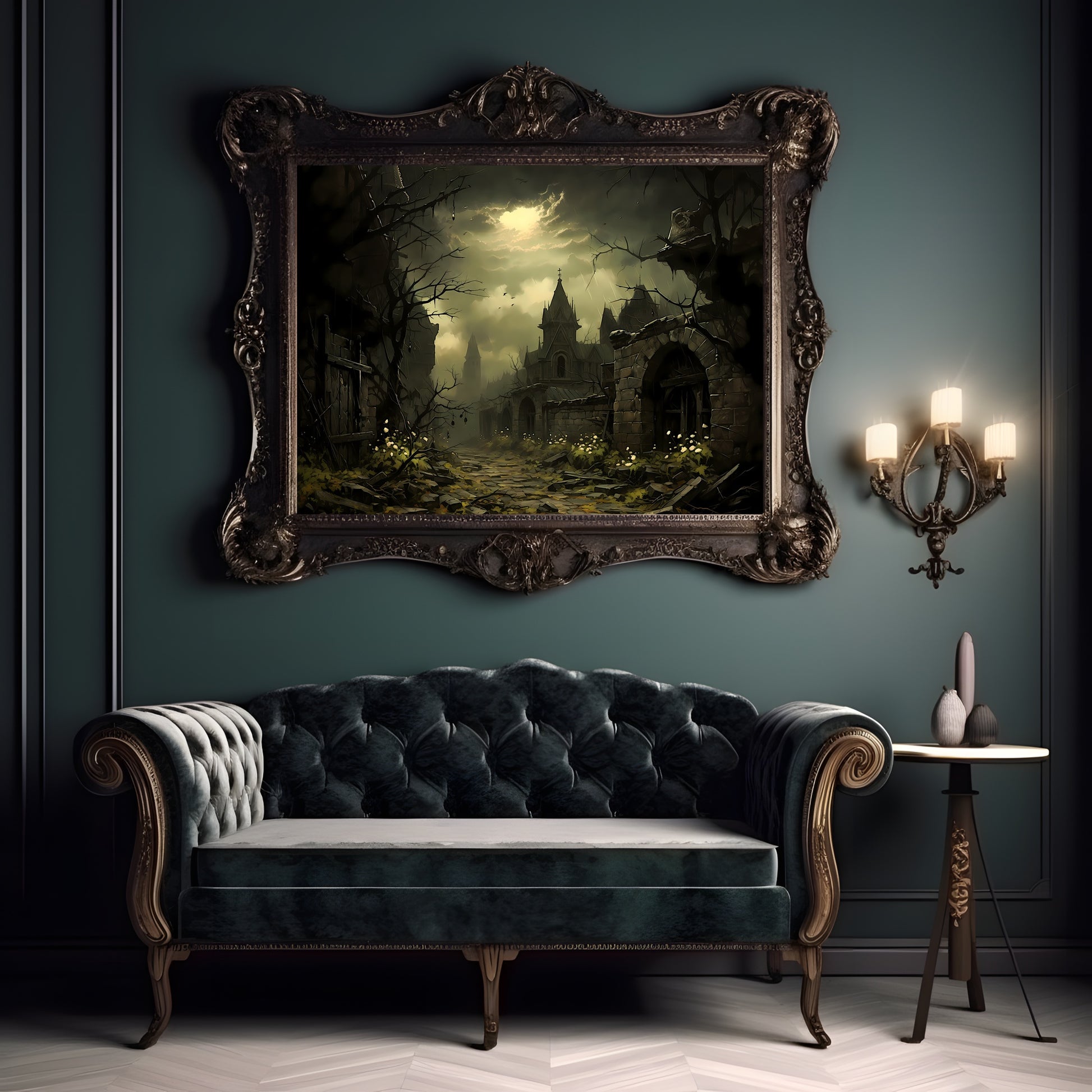 Verlassenes Dorf Wandkunst, romantisches Lost Place Wanddekor, dunkles Cottagecore-Kunstwerk, Vintage-Natur, Reclaim, ästhetisches Gemälde, Papier-Posterdruck