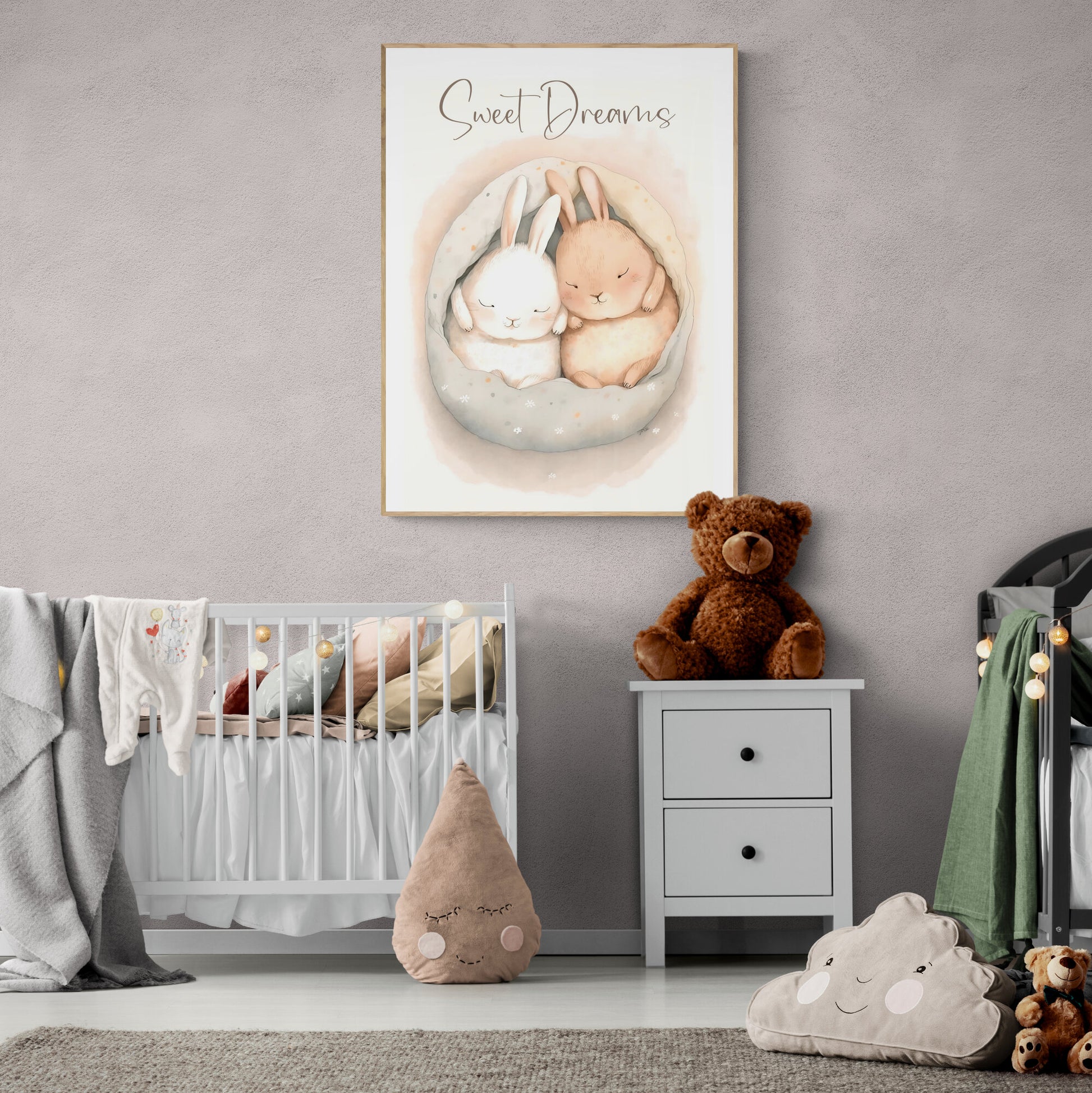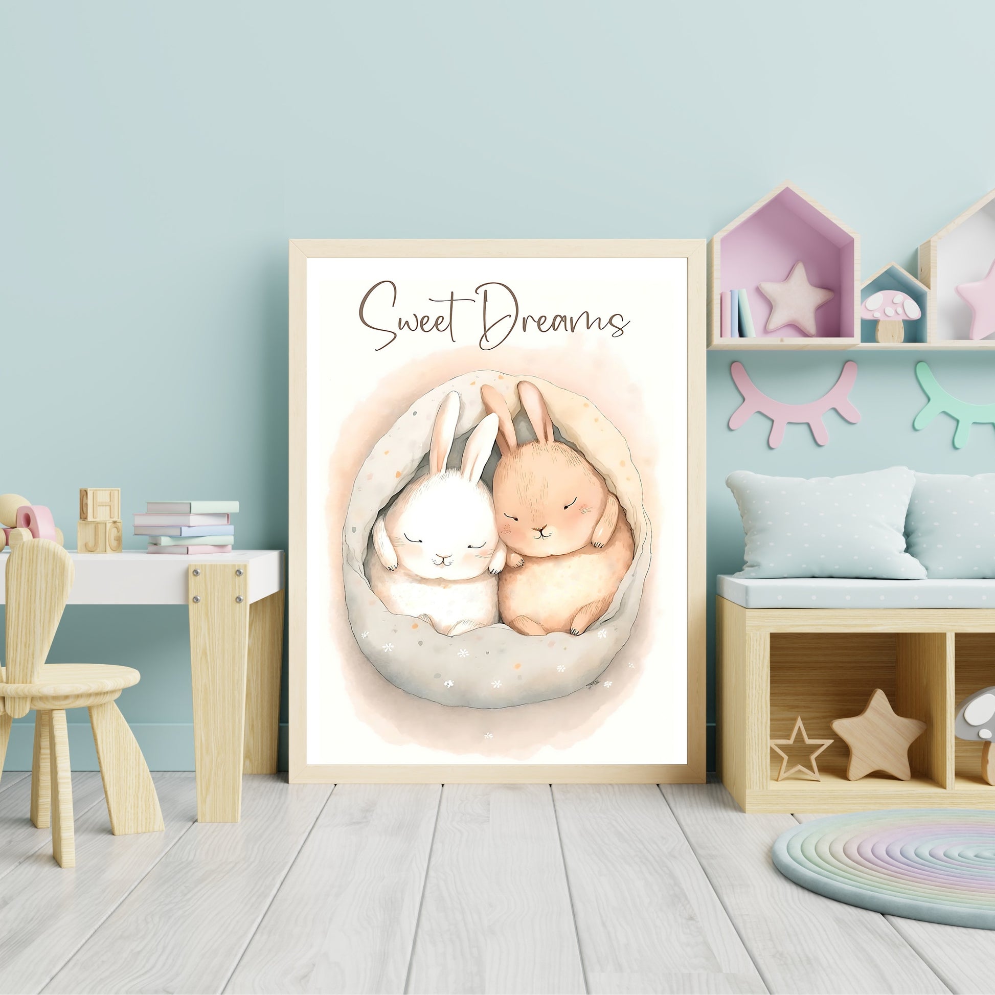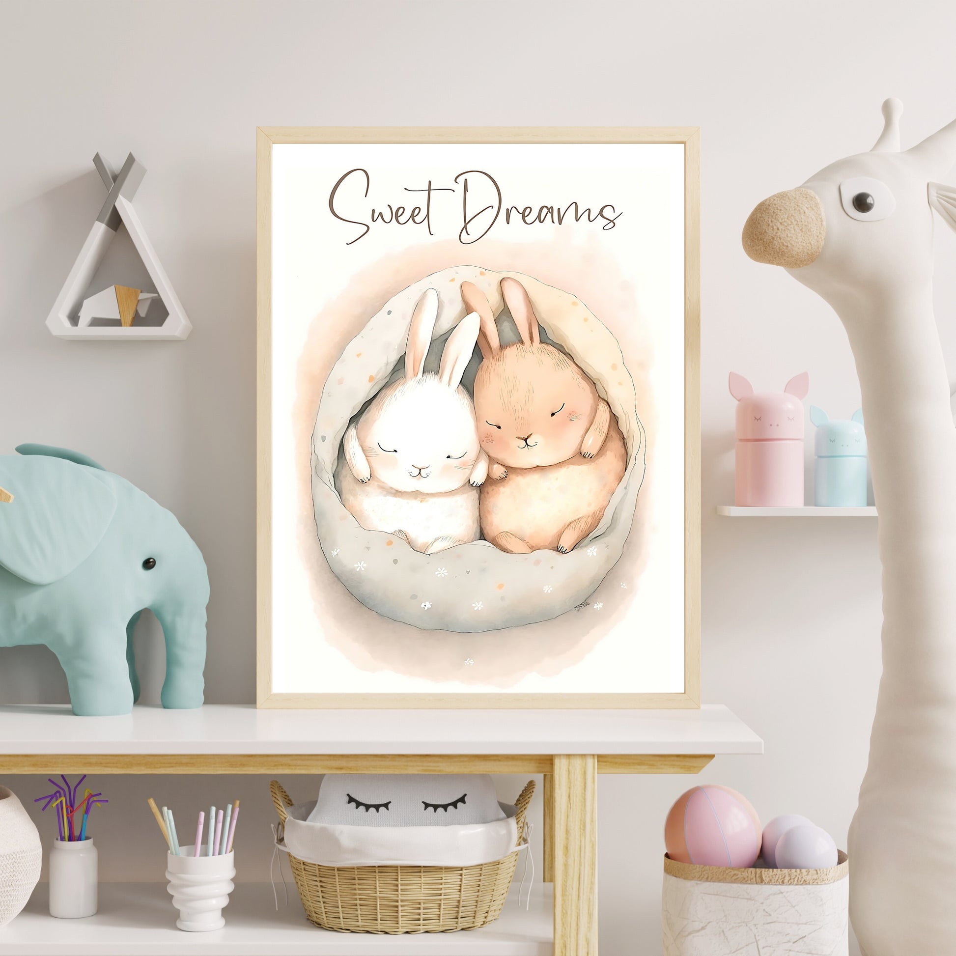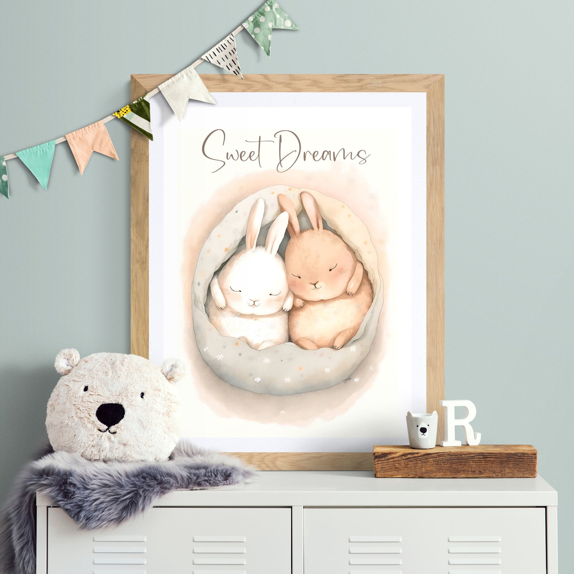 Baby Hase Tier süße Träume Wandkunst geschlechtsneutral Tier Kinderzimmer Hase Druck Porträt Papier Posterdrucke