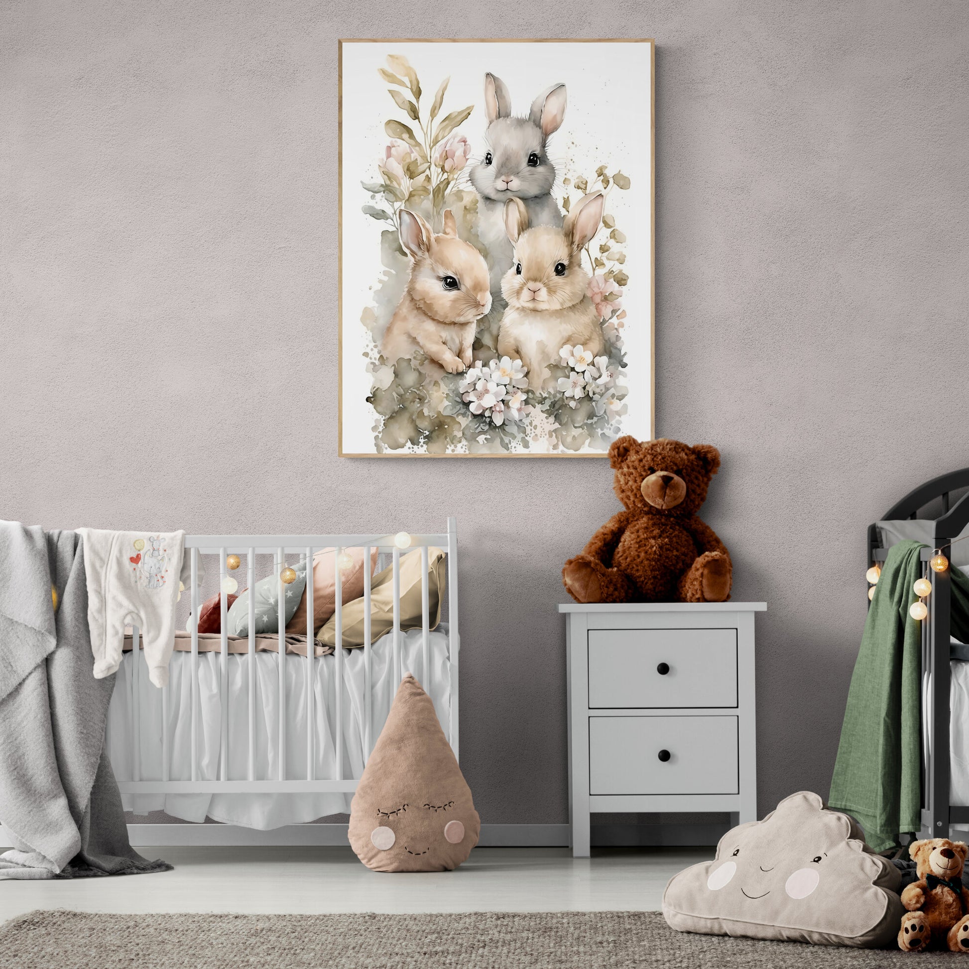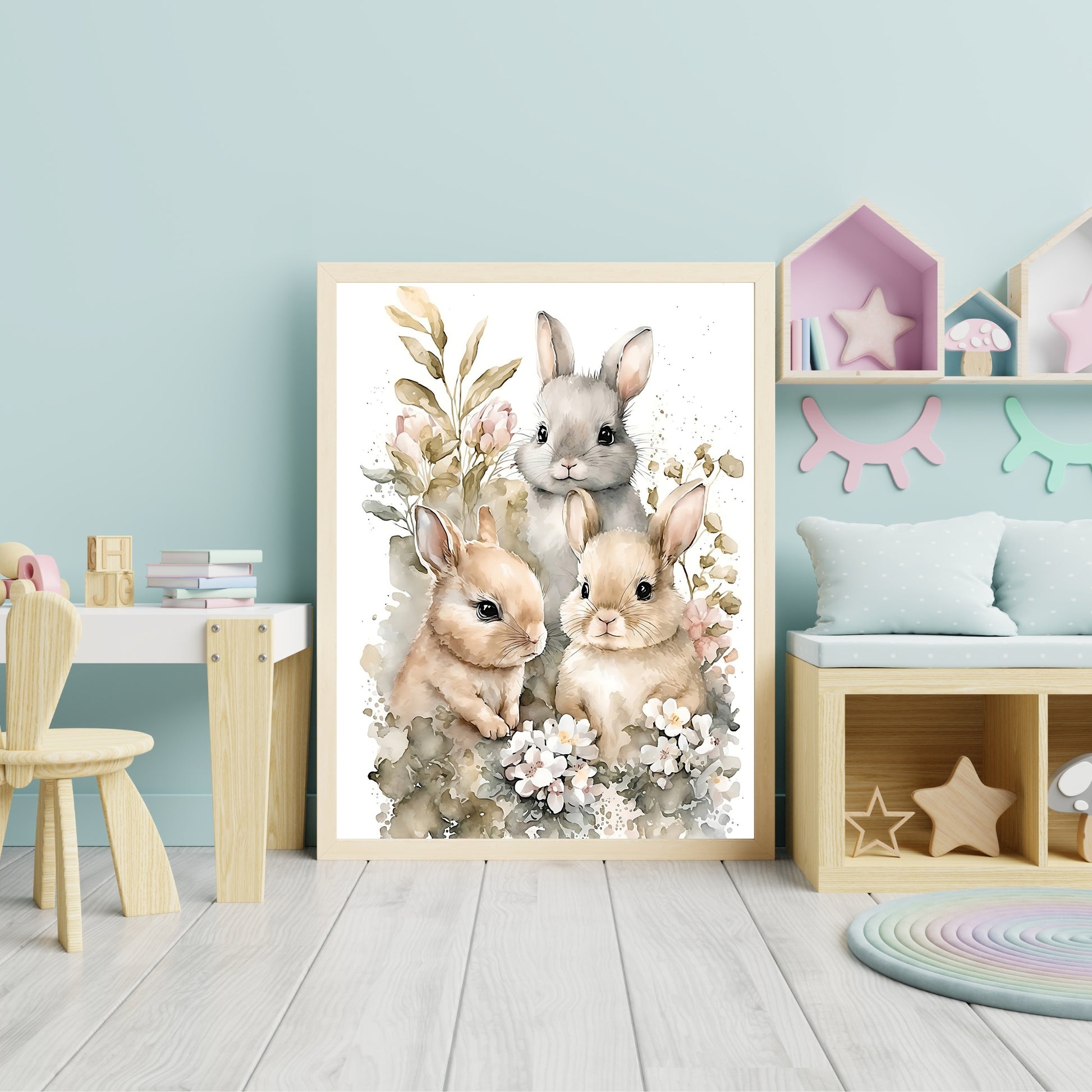 Baby bunny with flowers animal wall art gender neutral animal nursery bunny printing flowers baby bunny portrait Paper Poster Prints