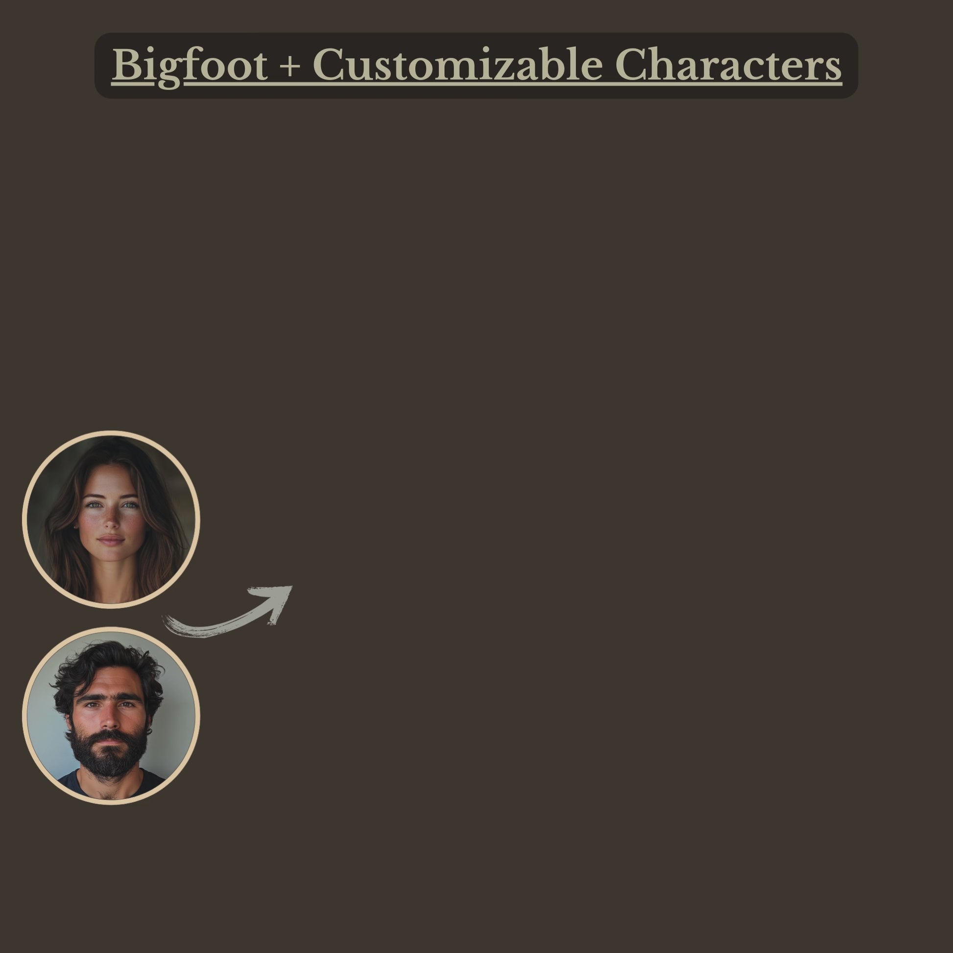 Surprise cryptid fans with this sepia art print of vintage figures beside a furry Bigfoot in a hazy mountain backdrop. Choose from a variation of different characters and personalize faces for a truly unique gift that captures creepy, adventurous vibes. Ideal for Bigfoot lovers and mystery wall art collectors seeking a custom, unforgettable present.